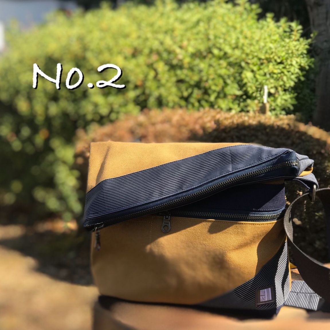 No,1黄色はデニム生地をベースに下部は黄色帆布使用。